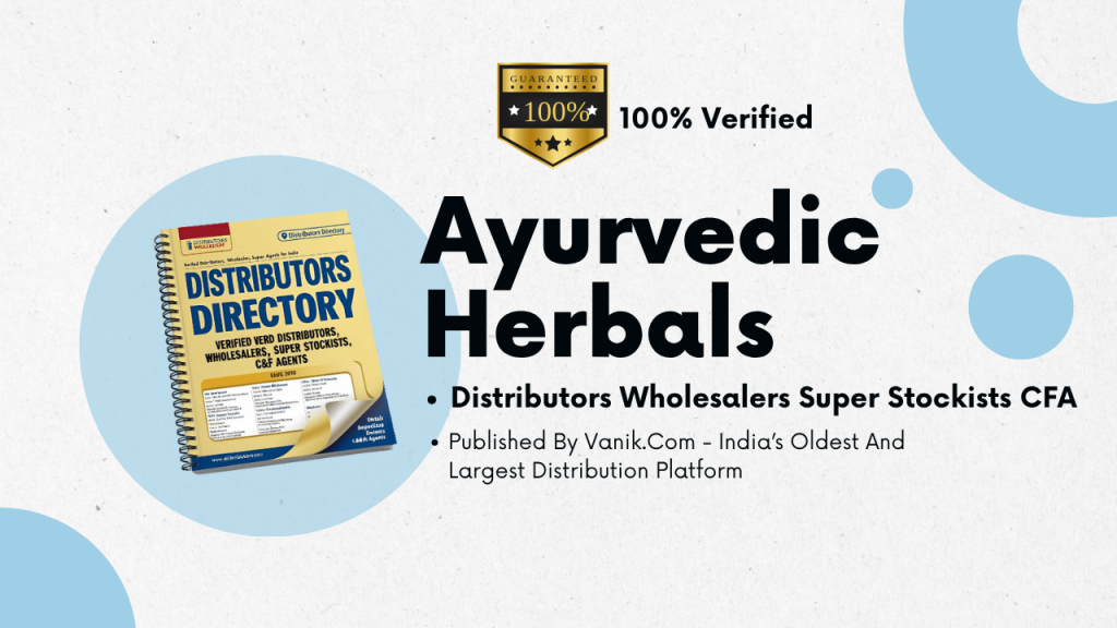Unlock full potential of Pan India Ayurvedic and Herbals distribution market with exclusive, verified Ayurvedic Herbals Directory of Distributors, Wholesalers, Super Stockists, Dealers, C&F Agents, Sales Agents. With verified contact details including phone and email – you’ll be able to establish instant communication and build a powerful distribution network across India.