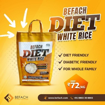 Befach Brings you for the first time in India the best quality Sona masoori Rice in a regular white format that is ideal for people who have diabetes or for people who are health conscious and want to eat Low GI rice. Developed and Licensed by Proff. Jayshankar Telangana State Agriculture University.We are looking for Dealers, Supertockist, Franchises, Distributors for our Rice.