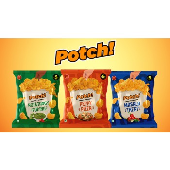 The perfect snack to kick start a party. Made with superior quality Potato and high grade seasoning. Attractive designs and Matte finish packing. Available in 6 flavours- Cream & Onion, Tomato Twist, Masala, Hot & Tangy Pudina, Salted, Peppy Pizza.