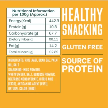 A crunchy combination of rice, ragi and urad that's gluten free and protein packed with a cheesy taste.