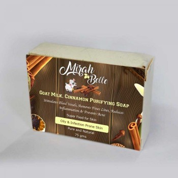 we recommend you to use the Goat Milk Cinnamon Purifying Soap. The soap helps to reduce skin inflammation and prevents acne formation. It is ideal for someone with oily and infection-prone skin. Do not be afraid of side effects as we use completely organic ingredients like herbs and natural oils in making the soap. They are sure as hell chemical free!